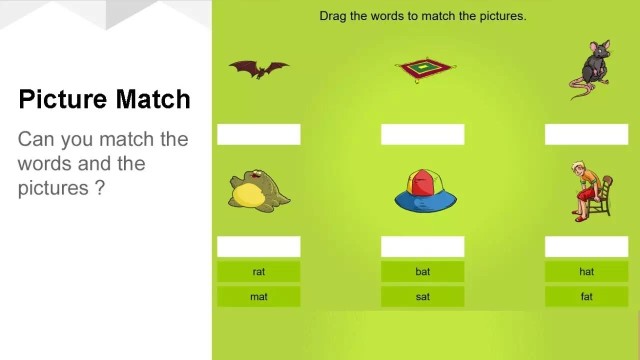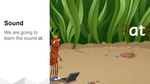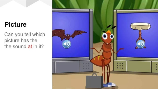 卡通老师会读“at”的发音,小朋友只需要用鼠标或者手指直接点击“at”就可以顺利完成任务了!不过要记得“at”是怎么发音的哦!