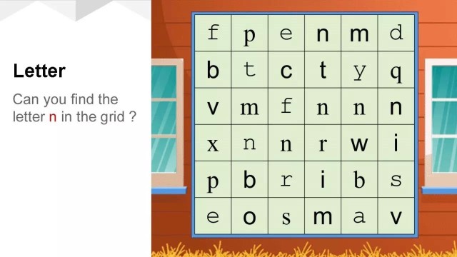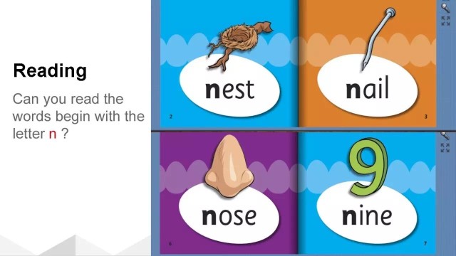 今天让我们学习一个新的发音,非常简单的内容,卡通老师会读出“n”的发音,然后小朋友只需要操作鼠标点击“n”就可以完成任务,在学习“n”发音的同时,也熟悉“n”的书写,为以后的阅读做准备!