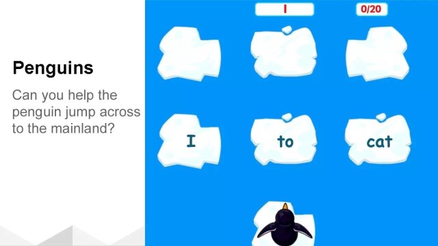 企鹅在回家的时候遇到了暴风雪,你能帮小企鹅找到回家的路吗?这是个非常简单的小游戏,目的是让小朋友认识“I”这个字母,只需让小企鹅依次跳到标记有“I”字母的冰块上最终就可以让小企鹅回到自己的家与妈妈相见了!