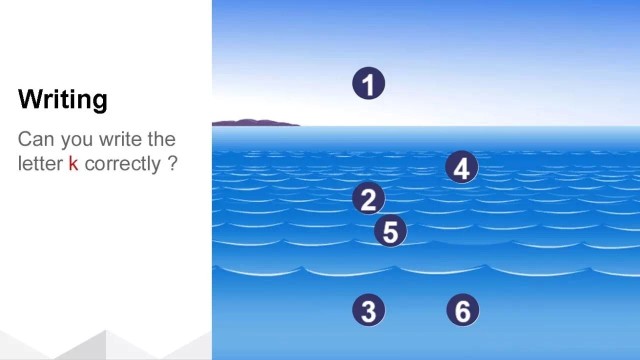 怎么正确的书写“k”呢?小朋友试着按照数字的顺序去写,看写出来的是不是非常正确的“k”呢?