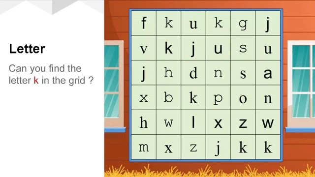 聪明的小朋友能在字母表格中找到多少个“k”呢?要仔细哦!