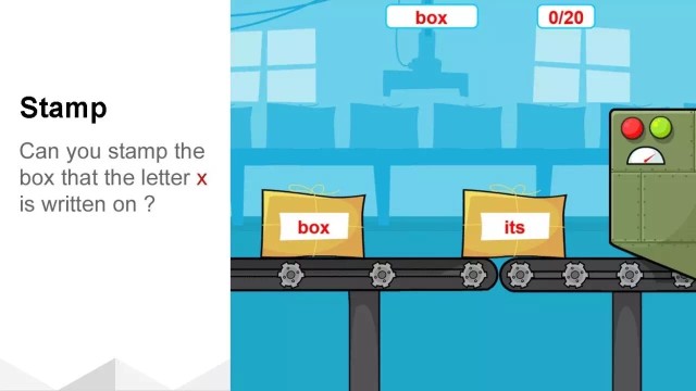 非常简单的内容,卡通老师会读出“x”的发音,然后小朋友只需要操作鼠标点击“x”就可以完成任务!