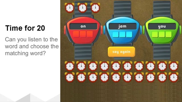 卡通老师开始听写单词了!老师会读一个单词,那么小朋友知道老师读的是哪个单词吗?如果没有听清的话,可以点“say again”按钮再听一遍的!20个单词,聪明的小朋友每个都可以听懂的!